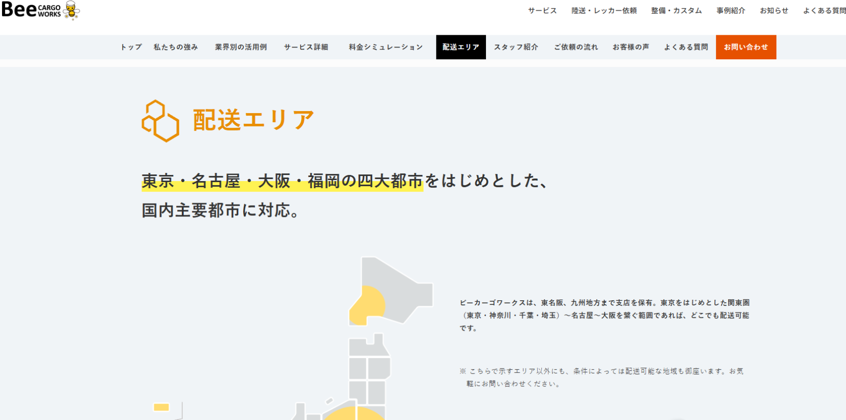 対応可能な配送地域やネットワーク拠点を、地図やリストで分かりやすく提示しております。貴社のビジネスエリアとの適合性を照らし合わせやすくなりました。